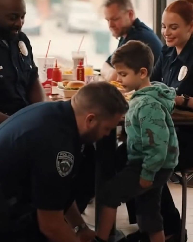 It was supposed to be just a quick lunch break. The officers sat at their table, half-eaten burgers and fries in front of them, when a little boy walked up.