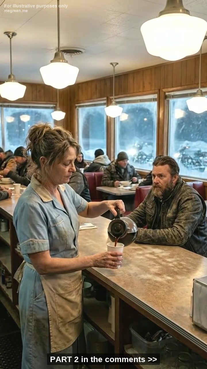 Their leather jackets, emblazoned with a snarling wolfâs head, gleamed under the dinerâs fluorescent lights, and their boots thudded heavily on the linoleum floor. The air thickened with unspoken tension. Every diner customer froze mid-chew, their eyes wide with a mix of fear and morbid curiosity.
