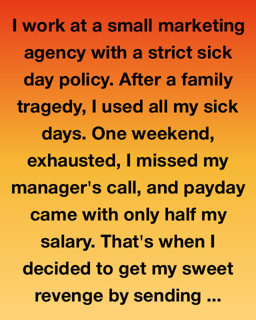 Over the next few days, I couldn’t shake the bitterness. She’d tainted the day in little ways—whispers, glares, comments just subtle enough to avoid confrontation but loud enough to bruise. I didn’t want to talk to her. I didn’t even want to see her.